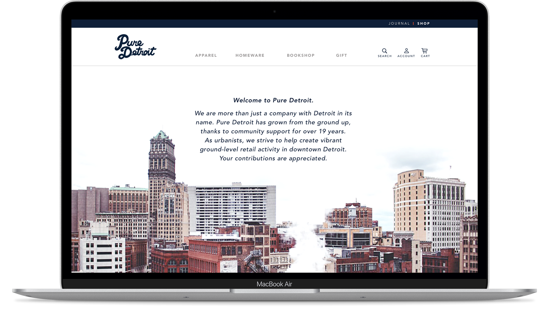 Pure Detroit requires an improved e-commerce website. They want to showcase their products, while maintaining the current brand image appeal.